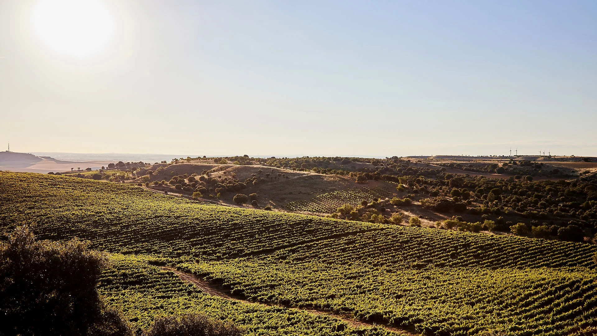 This 180 acre vineyard planted at 2,400 feet is on the northern table lands of Spain known as "La Meseta" of Castilla y Leon. The soil has a top layer of clay, chalk and sand with a deep layer of ferrous clay that retains water easily allowing vines to weather the hot dry summer with only minimal drip irrigation. Vines are farmed naturally with no use of agrichemicals